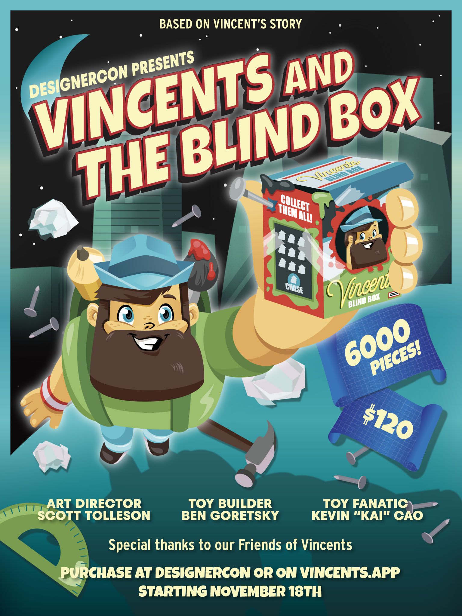 The first DesignerCon phygital collectible will be within our new Vincents Blind Box! The Blind Box will be our mechanism for rewarding participants of our new Vincents ecosystem. On November 18th, the public will be able to purchase a Blind Box both online as well as live at DesignerCon ‘22. Additionally, buyers will have exclusive access to all future Blind Boxes until DesignerCon ‘23, meaning only those who hold a Vincent from the first Blind Box will have access to the rest of this season’s Blind Boxes.